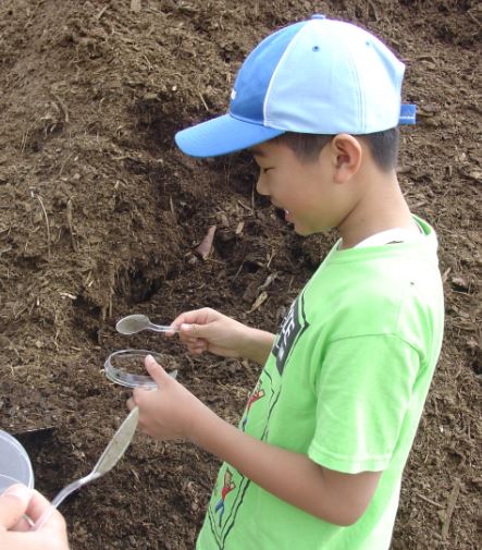 b. Students should look for a variety of organisms. They can use wooden tongue depressors, plastic spoons, or other instruments that will not hurt the organisms, to sort through the compost. Flashlights and magnifying lenses can be used to enhance the observation. The larger organisms, such as worms, centipedes, millipedes, sowbugs, earwigs, spiders, ants, beetles, snails, slugs, some mites, etc., can be observed with the naked eye. To get a closer look, they can pull the organism out and put them in the petri dish for closer observation. You can also allow them to place samples of the compost in petri dishes or watch glasses and observe them under a microscope.