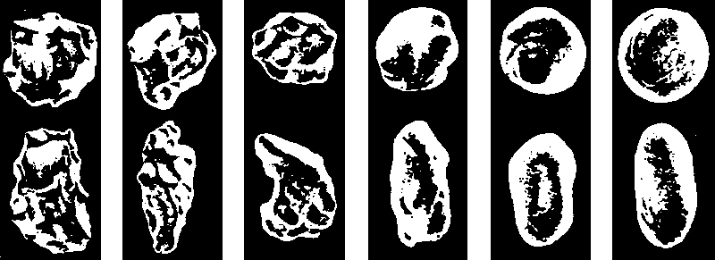 Instruct the students to compare the particles in their sand samples with the diagram below. In the diagram below, the most rounded grains are on the right, the most angular are on the left. Students find this difficult because they have to make a decision based on their observation. Again, microscopes are helpful. The rounder a particle, the longer it has been moving