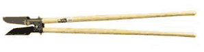 ShovelsShovels come with two different types of handles the straight handle and the shorter D-handle. The straight handle gives great leverage when moving large amounts of dirt and rocks out of the ground. The D-Handle gives more maneuverability when digging. |