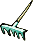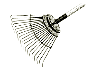 hard tines (teeth) that are used to spread around dirt, rocks or mulch.