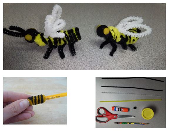 Have the students make their own “real” bee and “mimic” fly. Use pipe cleaners, pom pom, glue, play dough, pencil and scissor. Make sure students realize the two models. Below the on the left is a bee (long antennae, 2 pairs of wings, and smaller eyes.