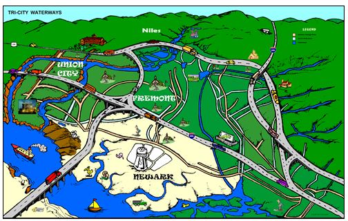 Go over the rest of the Watersheds powerpoint. (Slides 2-8). These slides define watersheds and end up back with the tri-city map. Have students outline the Mowry Slough Watershed, Laguna Creek Watershed, and Alameda Creek watersheds on the map.