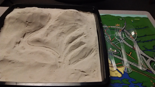 Open up the watersheds powerpoint to the first slide (map of tri-City area). Hand out the placemat of the Tri-City Area. Ask the students to find the following places, by putting their finger. Walk around and check that they correctly have found the areas.